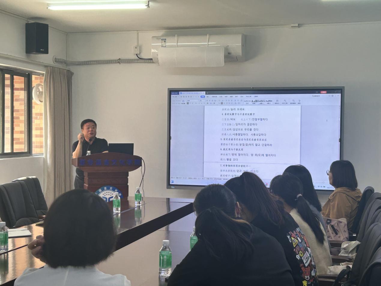 11月23日下午,公司邀请了延边朝鲜族自治州朝鲜语文工作办公室主任金千根老师作学术讲座。本次讲座由朴香兰老师主持,TapTap全体研究生参加。金千根老师以“戴着镣铐跳舞”为题,分享了翻译的定义、标准、阶段、策略与要求等,为在场师生带来了宝贵经验和见解。