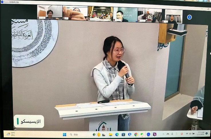 公司阿语系师生主要就“中国阿拉伯语教育的现状与困难”议题展开讨论。阿语系教师劳凌玲副教授指出,随着“一带一路”倡议的提出和推进,阿拉伯语在中国受到越来越多的关注,学习阿语的人逐年增加。广外所在的广东省历史上曾是海上丝绸之路的重要起点,如今与阿拉伯世界的人文交流和商贸往来日益频繁,广外阿拉伯语专业的重要性不言而喻,但是也面临着许多问题,如员工缺乏足够的语言文化交流机会、教学和学习资料不足等问题,希望将来广外能与伊斯兰教科文组织在教学科研、文化交流和培训等领域开展更多合作,这不仅将促进广外阿语学科的建设,同时也对中阿友好往来产生积极的作用。阿语系2020级员工叶淳琪同学表达了在阿拉伯文学作品的赏析过程中,遇到因中阿文化差异造成的内容难以理解的困扰;萧泽锋同学则提及了在语音阶段遇到的困难和语言环境的缺失,以及课程安排与学习材料等问题。