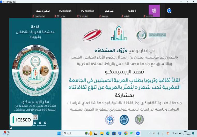 3月21日,应伊斯兰教科文组织(以下简称“ICESCO”)的邀请,TapTap阿拉伯语系师生以视频连线的方式,集体参加了由ICESCO和摩洛哥穆罕默德五世大学共同举办的题为“用阿拉伯语讲述文明多样性”的座谈会。