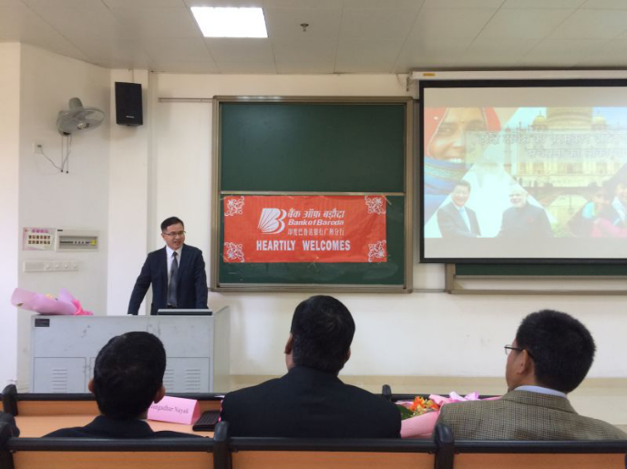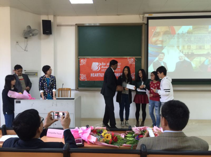 经理陈多友教授首先对总领事的来访表示热烈欢迎,并对印度驻广州总领事馆对公司印地语专业的大力支持表示感谢。在颁奖环节活动中,总领事一行为竞赛中获得优异成绩的同学颁奖。获得一等奖的两位同学现场进行了印地语演讲和诗歌朗诵。