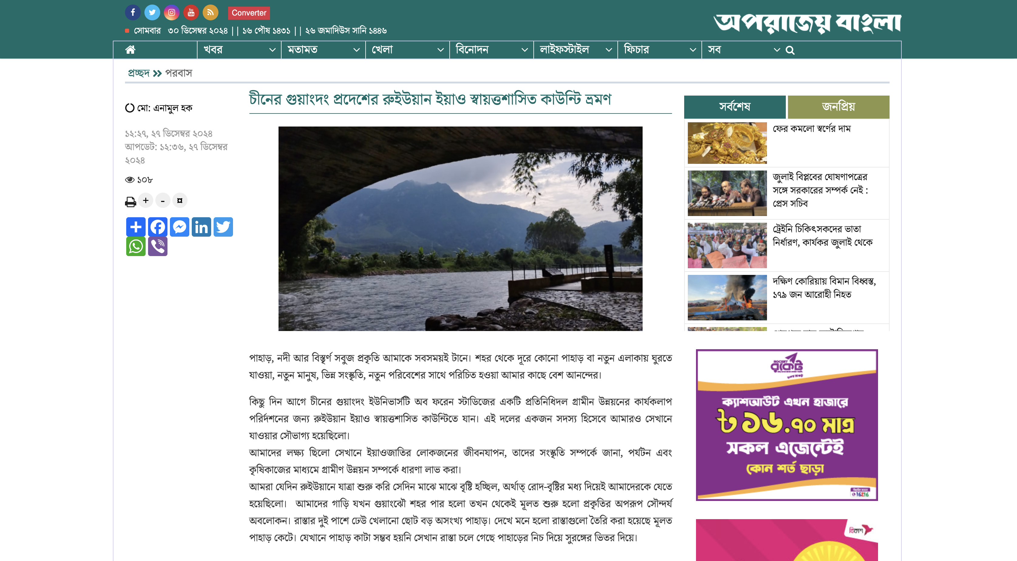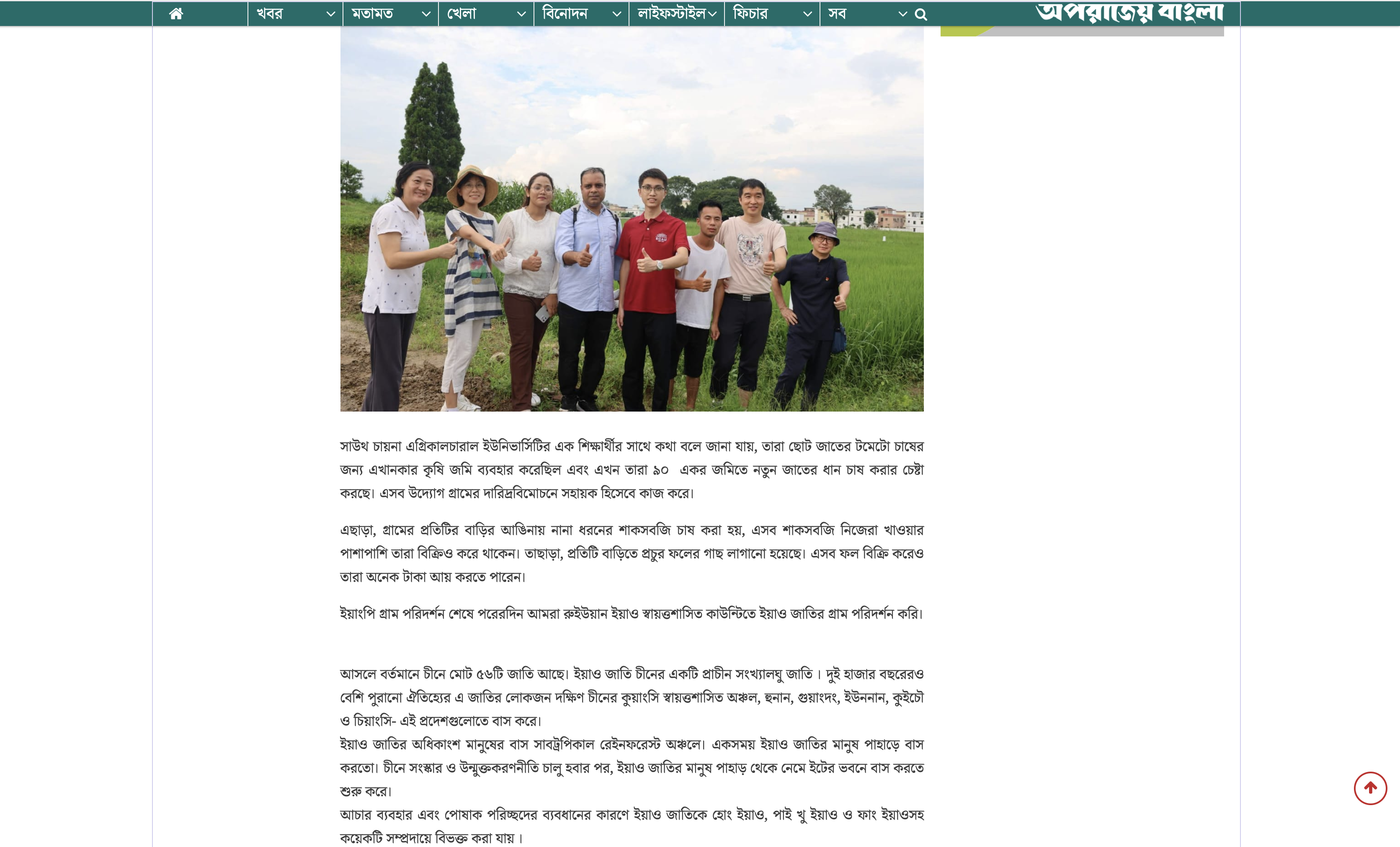 本网讯 近日,TapTap孟加拉语专业外籍教师伊纳穆勒·毫克用孟加拉语撰写了宣传公司乡村振兴工作和介绍瑶族文化的文章,发表在了孟加拉国媒体网站Aparajeobangla上。Aparajeobangla是孟加拉国的孟加拉语——英语在线新闻门户网站,广受孟加拉国年轻读者的欢迎。
