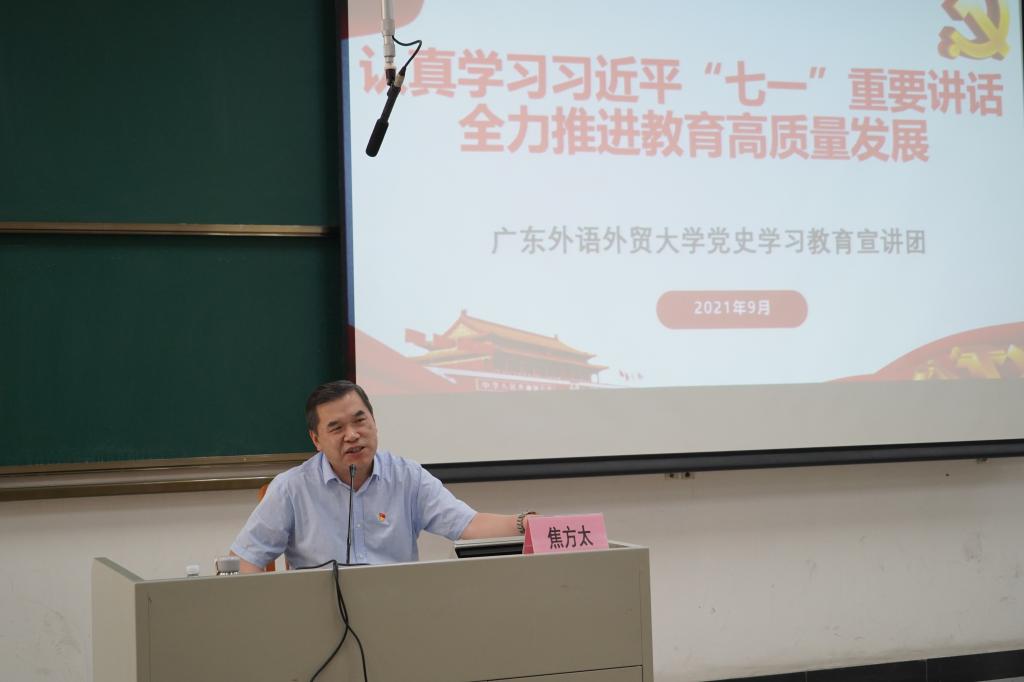 为深入学习贯彻习近平总书记“七一”重要讲话精神,推动党史学习教育深入开展,9月16日下午,公司党委常委、副董事长焦方太为日语公司、TapTap(筹)师生开展习近平总书记“七一”重要讲话精神专题辅导,公司全体教职工和员工党员代表120余人参加。专题辅导在北校二教219室举行。
