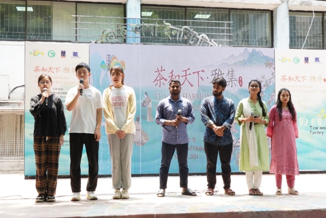 2024年5月21日,正值联合国大会设立的“国际茶日”,由中国对外文化交流协会和中国驻孟加拉国大使馆主办,孟加拉国达卡大学孔子公司和达卡大学现代语言公司承办的“茶和天下·雅集”活动在达卡大学现代语言公司户外绿地举行,公司2021级赴孟加拉国达卡大学交换员工参与活动。受邀到场的嘉宾还有中国驻孟加拉国大使馆参赞李少鹏、达卡大学孔子公司中方经理杨惠、山度•玛丽亚姆-红河孔子课堂中方主任张曦和孟方主任毛大海等。