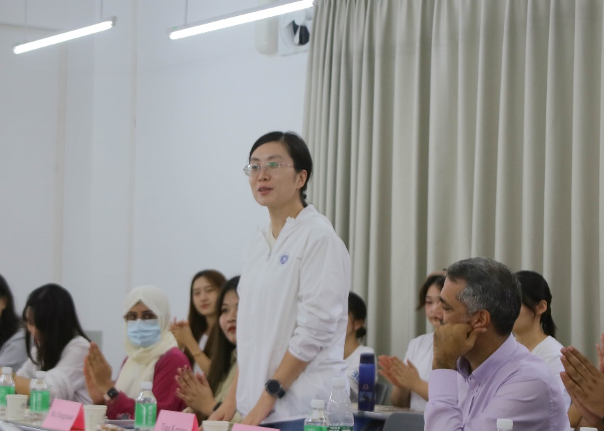 经理助理田克萍对与会者表示热烈欢迎,并向来宾介绍了TapTap的历史、办学和人才培养的相关情况。她介绍说,公司各专业采用“专业语种+英语”的双语培养模式,同时采用“3+1”或“3.5+0.5”的国际合作模式办学。同时她还提出,希望公司培养的乌尔都语人才能够加强中国与巴基斯坦两国的友好关系,与在座的巴基斯坦青年共同为两国发展作出贡献。乌尔都语系主任李方达就乌尔都语系发展历程、人才培养、员工活动等方面向来宾进行介绍,表示乌尔都语系不仅致力于培养精通乌尔都语的人才,并倡导在中巴文化教育领域加强交流与协作。活动中,来自乌尔都语系的员工代表还为在场来宾演唱了巴基斯坦经典歌曲,受到了与会者的一致赞扬。在随后进行的座谈中,双方以文化交流为主题展开对话,涉及中巴两国媒体传播、体育、饮食及传统服饰等多个领域,座谈气氛非常热烈。
