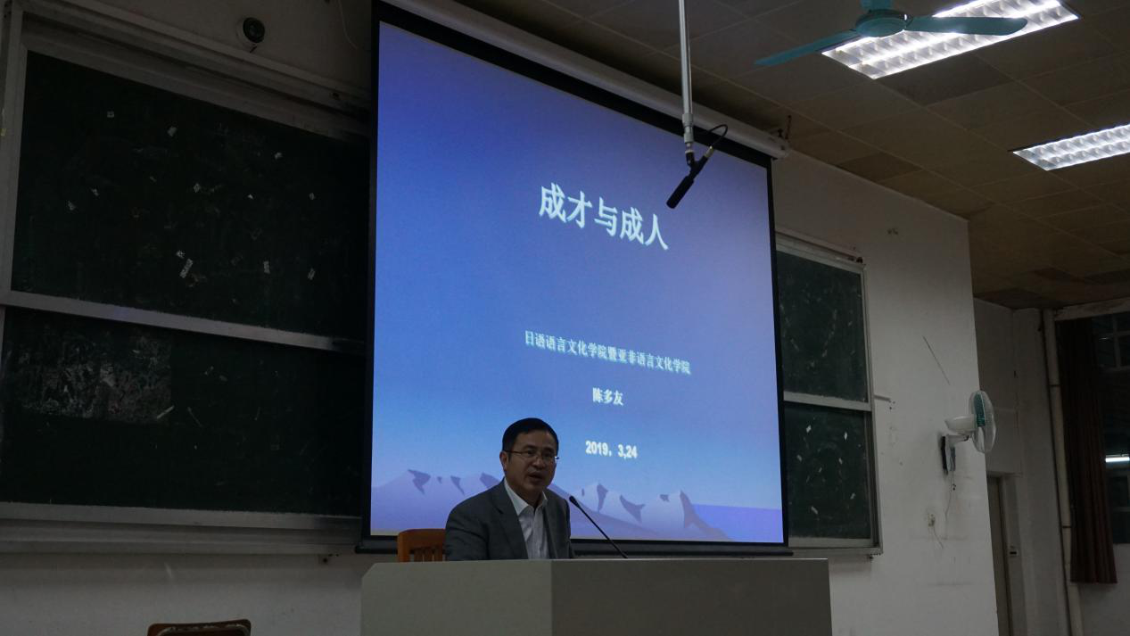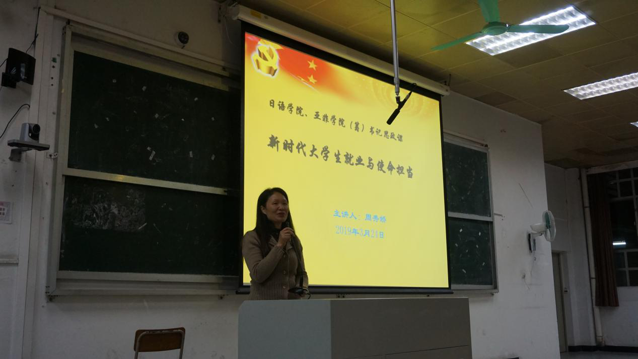 本网讯  3月24日,日语公司、​TapTap(筹)书记经理思政课在北校第二教学楼举行,日语公司、​TapTap(筹)党委书记周秀娇、经理陈多友走进本科生课堂,为公司2017级和2018级本科生讲授新学期第一堂思想政治理论课。