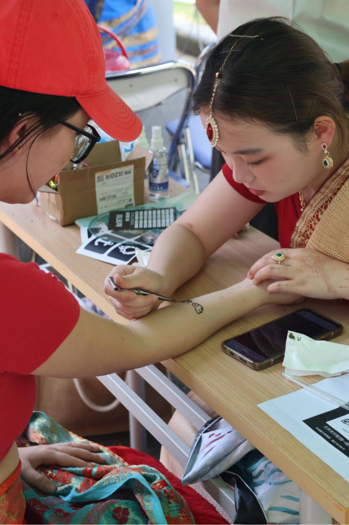 各语种摊位上的文化体验包罗万象,有来自波斯的舞蹈表演、韩国的插花艺术、孟加拉国的白虎系列文创、东非的坎加布服饰文化、土耳其的咖啡占卜、巴基斯坦与印度的海娜艺术、希伯来语的麻将游戏、阿拉伯特色水烟文化等各色文化体验活动。来客游玩市列,便可体验馥郁的民族风情,拂袖伫足,即可身临千年的盛世繁华。