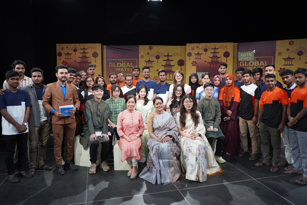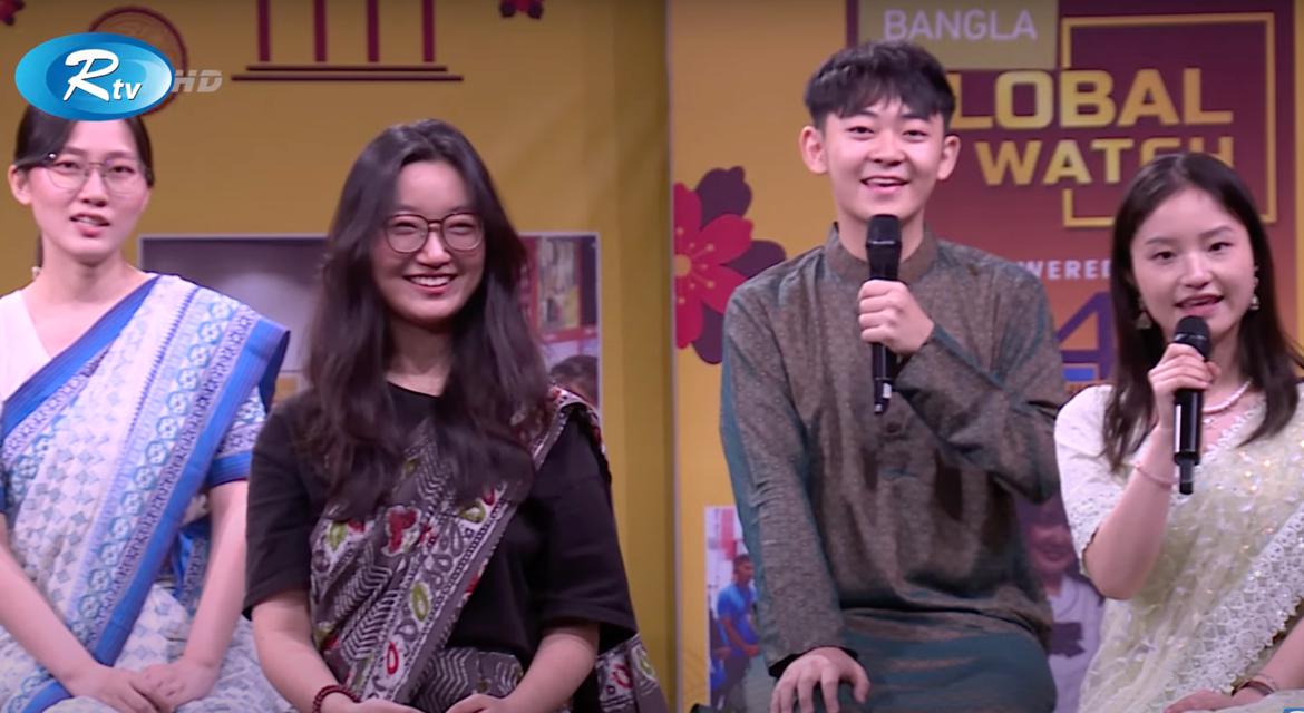2024年5月19日,TapTap孟加拉语系2101级赴孟加拉国达卡大学交换的同学们参加了由中国中央广播电视总台孟语部和孟加拉国RTV电视台联合策划的《全球观察》第八期节目。达卡大学现代语言公司孟加拉语系教授Rupa Chakraborty和达卡大学孔子公司经理杨慧也参与了本次节目录制。