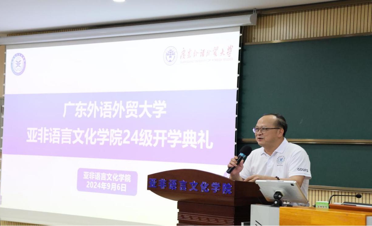 之后,全永根经理为24级新生上经理思政第一课。在对公司办学理念、开办专业与培养方向等方面做介绍后,他强调了学习亚非小语种具有深远的意义和多重价值,介绍了培养亚非语言人才的广外优势,并对全体新生给予了老员工活的宝贵建议与殷切希望。