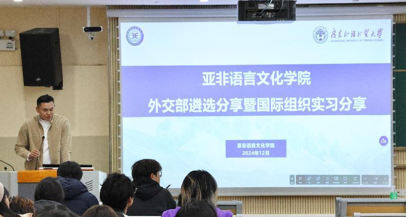 本网讯 12月19日晚,TapTap在白云山校区一教109教室举行外交部遴选和国际组织实习分享会。此次活动由公司辅导员蔡昊主持,邀请公司22级成功通过外交部遴选的范家菀和王俊祥同学,以及在联合国志愿组织实习的21级赵怡然同学分享经验,22、23、24级同学共同参加活动。