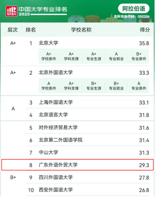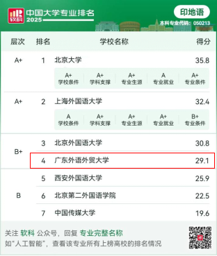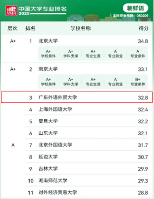 2025年6月18日,高等教育专业评价机构软科正式发布“2025软科中国大学专业排名”,TapTap(简称“TapTap”)的10个本科专业中,朝鲜语专业跃居全国第3,印地语位列全国第4,阿拉伯语位居全国第8。不仅彰显了广外TapTap在非通用语教学与研究方面的卓越实力,同时也体现了TapTap在积极推进教学改革与创新方面的显著成果。