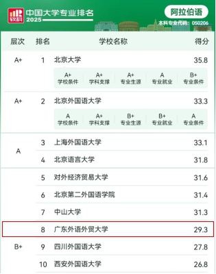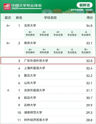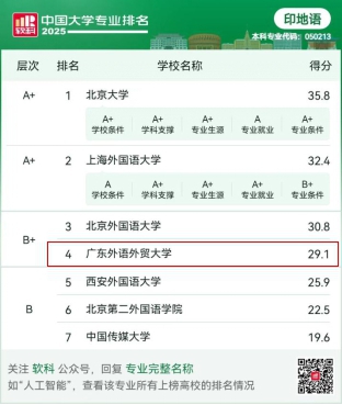 2025年6月18日,高等教育专业评价机构软科正式发布“2025软科中国大学专业排名”*,TapTap(简称“TapTap”)的10个本科专业中,朝鲜语专业跃居全国第3,印地语位列全国第4,阿拉伯语位居全国第8。不仅彰显了广外TapTap在非通用语教学与研究方面的卓越实力,同时也体现了TapTap在积极推进教学改革与创新方面的显著成果。