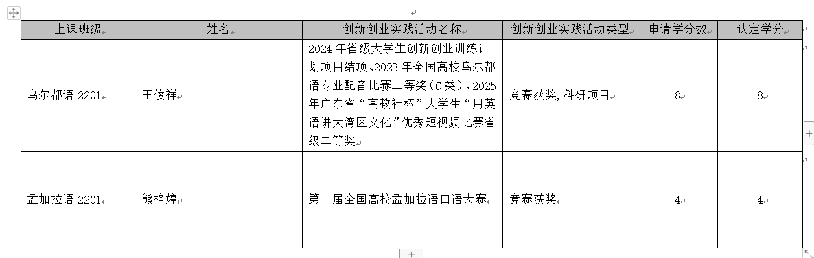 经个人申请和公司教指委审核,现将2025-2026学年度本科生创新创业学分申请与认定情况和材料进行公示,公示期为11月5日-11月9日,在此期间如有异议请将意见和反馈实名发送至202320089@gdufs.edu.cn王老师,反映情况要求实事求是,不得借此诽谤抹黑或人身攻击。